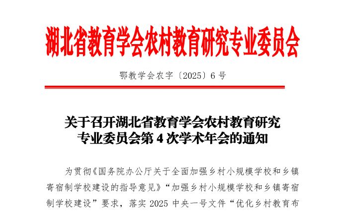 关于召开湖北省教育学会农村教育研究专业委员会第4次学术年会的通知